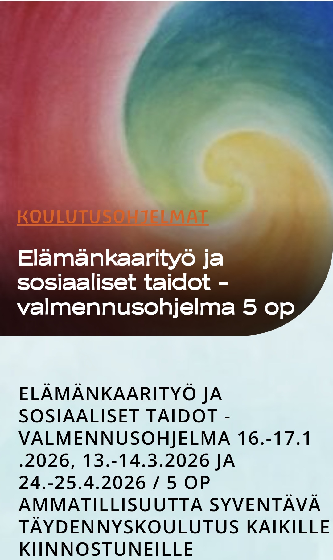 Elämänkaarityöntekijälle jokainen elämänmatka on arvokas. Työntekijä ohjaa reflektoinnin ja tutkimisen tapahtumaa, joka on huolella rakennettu. Tavoite on antaa vahva pohja tulevaisuuden polullesi.